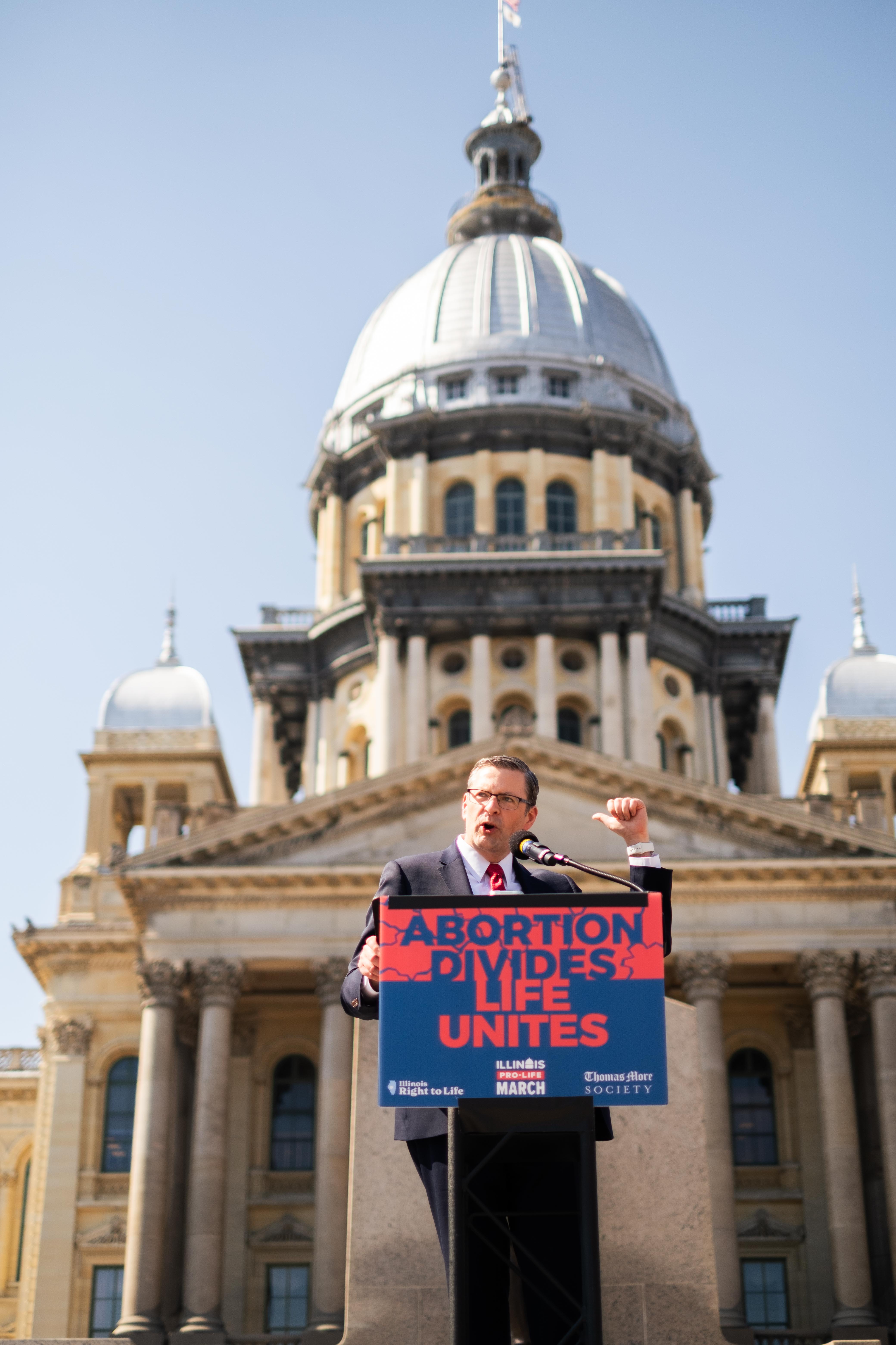 Thomas More Society was proud to co-host the Illinois Pro-Life March in Springfield, Illinois, where thousands gathered to stand for life and send a clear message to lawmakers (and theme of the March): Illinois Abortion Hurts American Women. TMS Executive Vice President and Head of Litigation Peter Breen delivered the Welcome Address, and our client Judy Cocks, a pregnancy center director, took the stage to share her experiences in frontline ministry serving women and families. From the Capitol steps to the streets, marchers carried the rally's call—Abortion Divides, Life Unites—reminding Illinois that the pro-life movement is alive, unified, and not going anywhere.
